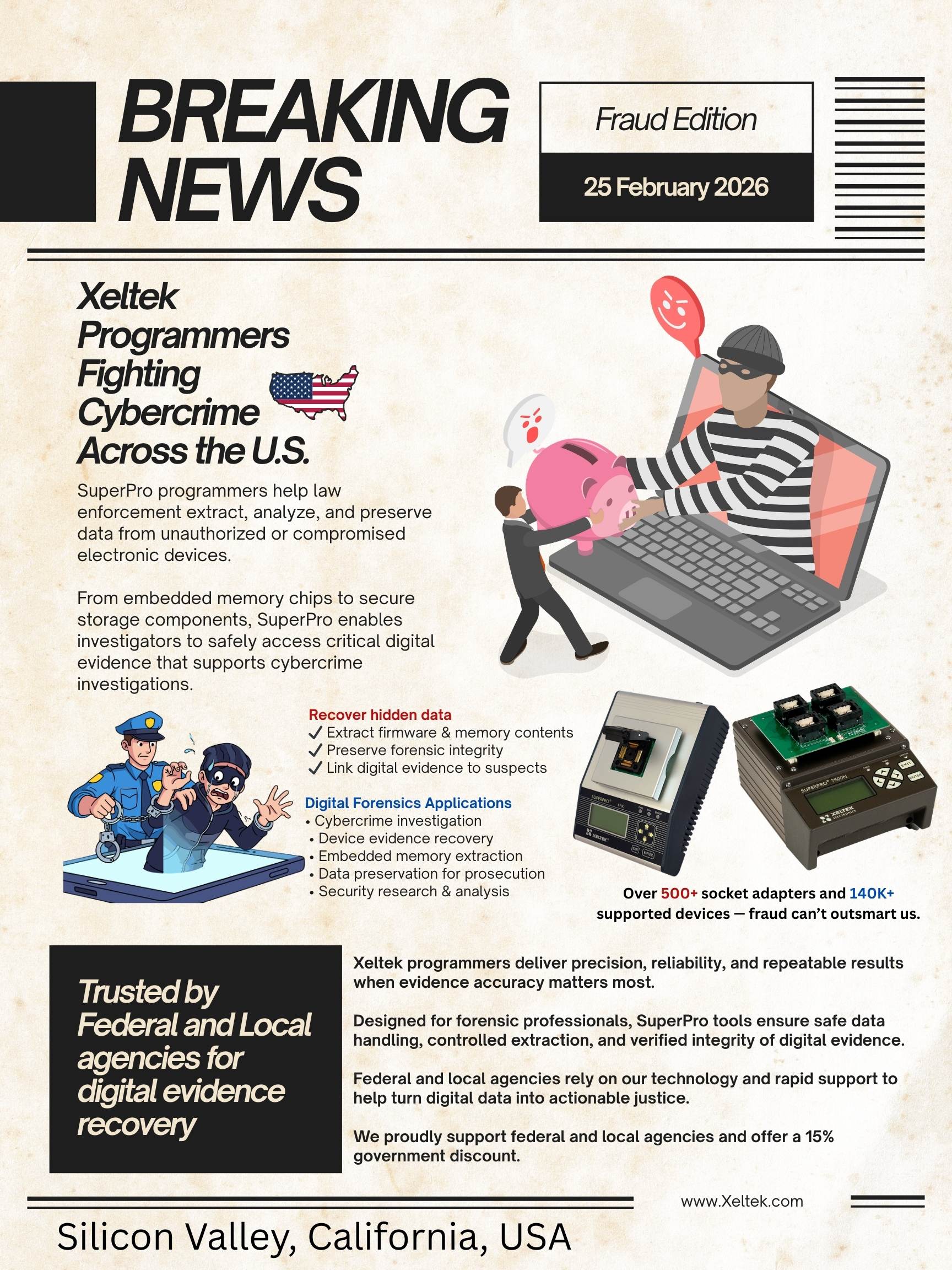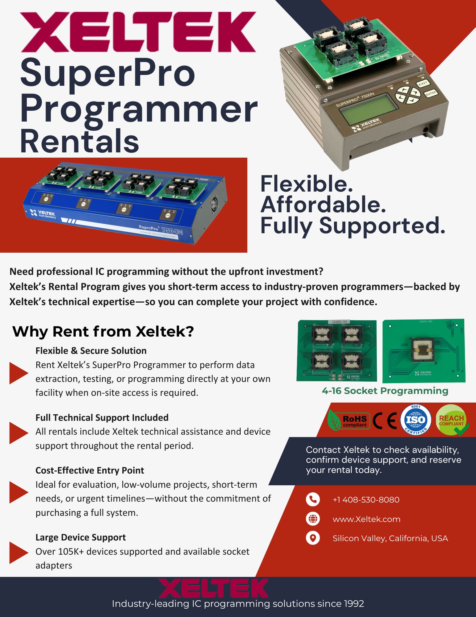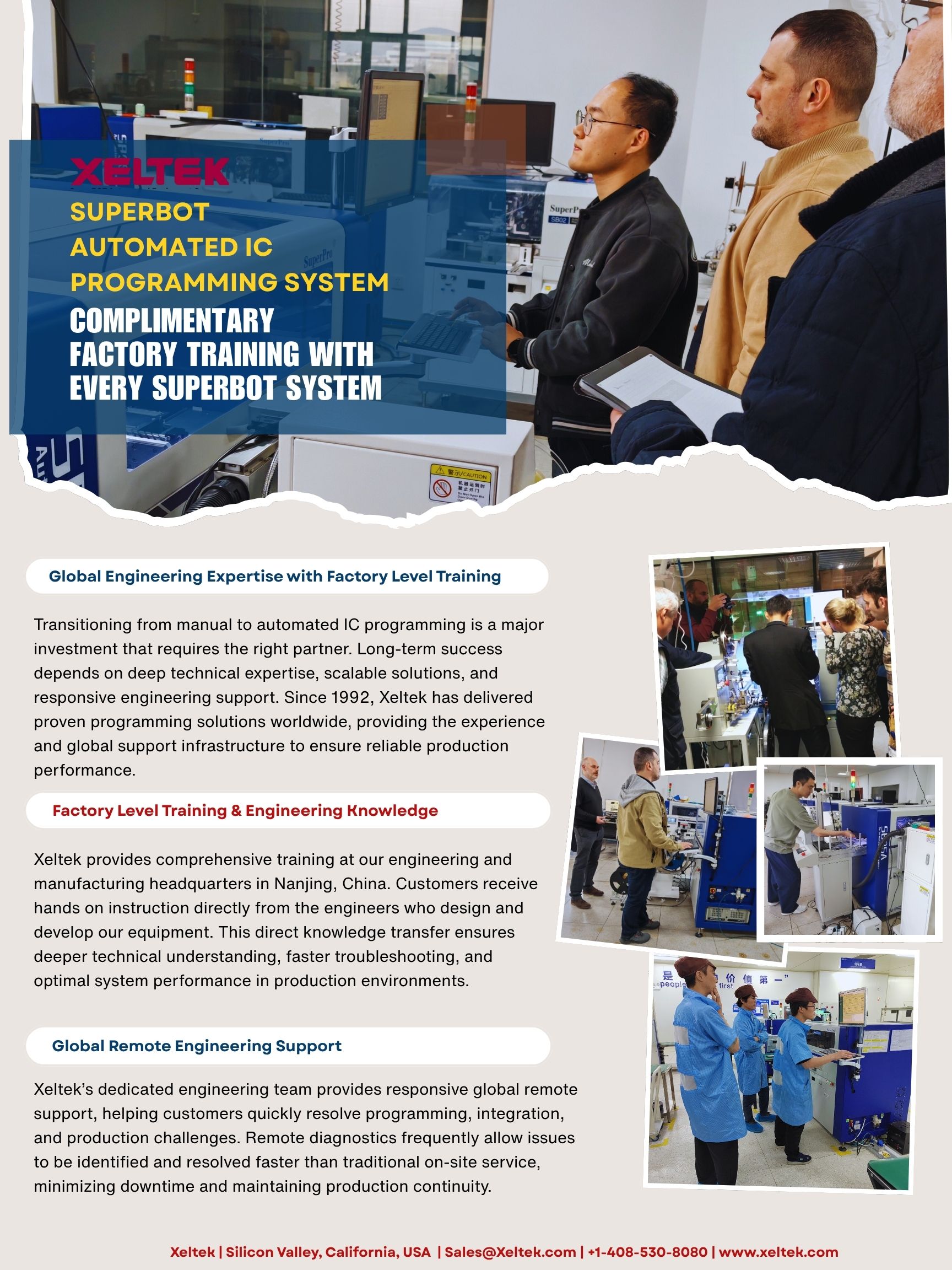 Automated IC programming lends an efficient and cost-effective solution to volume production. Xeltek's SuperPro® SuperBOT series delivers a full line of automated 24/7 workhorses, eliminating human handling and error while improving safety and saving time so workers can focus on more important priorities. With over 115K devices supported and free service and support for 5 years, learn how Xeltek can help satisfy your most demanding programming needs.