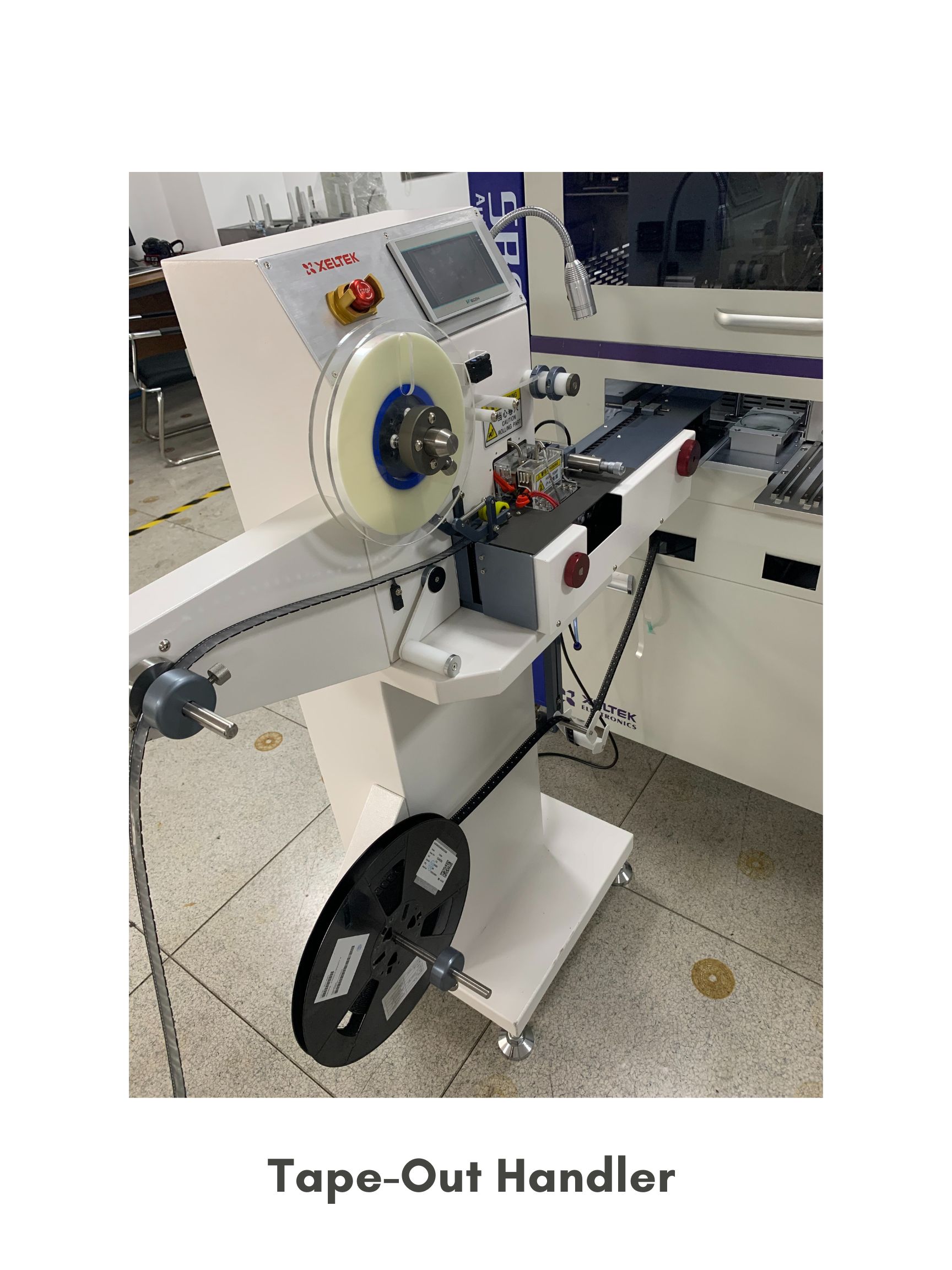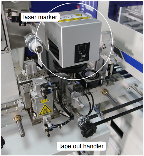 • Tape Out Handler (adjustable tape reel; cold or heat sealing)