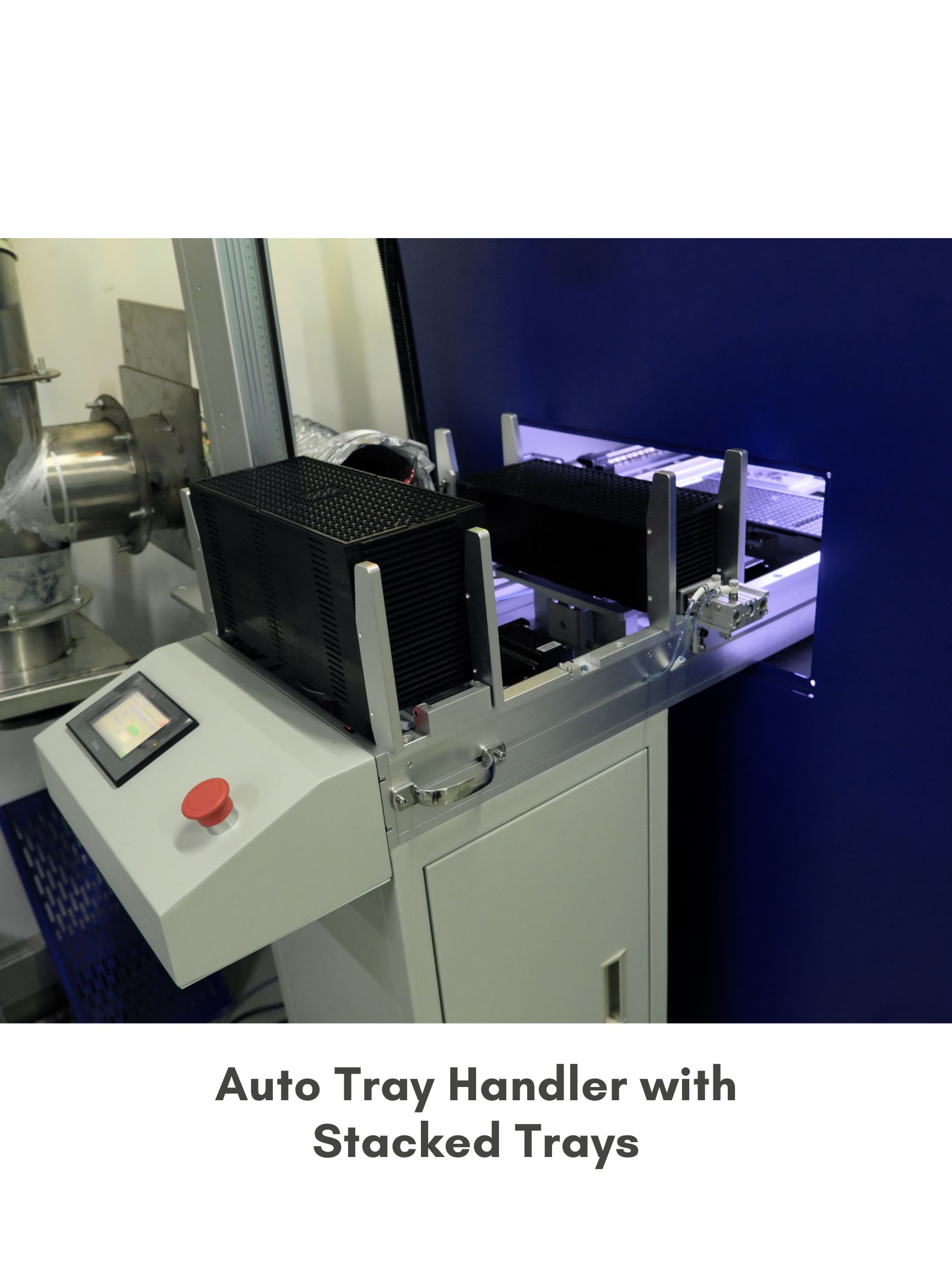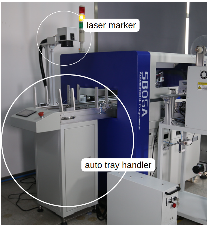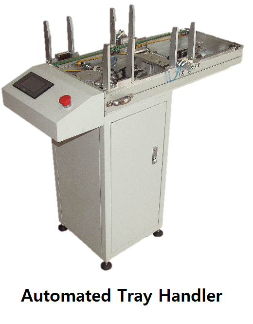 The Automated Tray Handler feeds unprogrammed chips into the system and stacks completed trays. This high-speed tray exchanger can handle up to 25 trays at a time, reducing manual labor and improving efficiency.