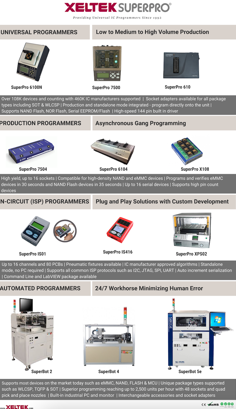 Xeltek offers a full product line of IC programmers.
